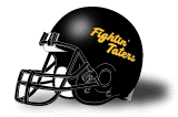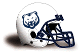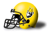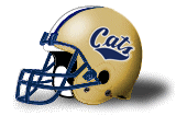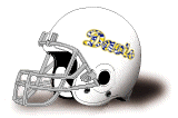 I have received very little information about historical helmet designs for this team. The photograph below shows a design used by Cal Poly in 1982; the helmets are probably gold in color and have a strange logo that appears to consist of the front half of a horse's body which transitions into a "lightning bolt" towards the back of the helmet. I would greatly appreciate a clear photograph of this interesting design. This design was apparently still in use as late as 1986.