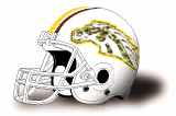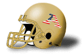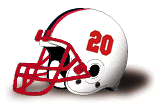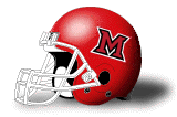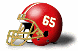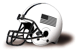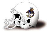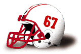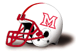 Toledo's helmet history is unclear for the earliest years covered by this web site (early 1960s). The team apparently used white helmets from at least 1960 through 1966. Judging from a very small number of photographs it would appear that these white helmets had a single dark stripe in 1960 and 1961 (probably blue, if the school colors have not changed); a single photograph from 1962 shows numbers on the sides of the helmet (otherwise like 1961); and in 1963 what was apparently a "rocket" logo different from the 1964-1966 one was used (photo below). Numerals of unknown color are also visible at the back of the helmets in all available clear photos from 1963 through 1966.