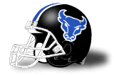 The 1973 helmet design had a blue shell, a yellow/blue/yellow set of stripes, and a rather small yellow oval or football-shaped logo on both sides (photographs below found in opposing teams' yearbooks - Toledo did not publish a 1974 yearbook). No photographs have been found that are sufficiently clear to reveal what was inside the football-shape, but it is stated in the September 5, 1973 edition of the Toledo Blade that the team "will wear a commemorative decal on their helmets...in the shape of a football that will say 'A Tribute to Tony'" - this in reference to a freshman member of the team, Tony January, who died on August 30 after collapsing during a practice session.