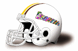 In 1974 WMU's helmets were of some light color, apparently either yellow or gold, and had a stripe sequence of brown-white-brown. No decals are visible in any of the photographs that I have seen of this design.