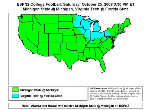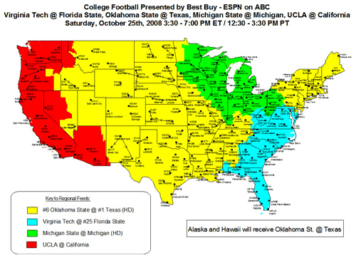 Below are the coverage maps for this week's regional action on ABC and ESPN2