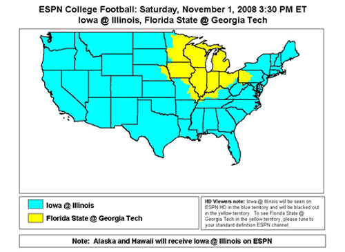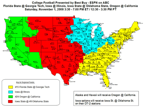 Below are the coverage maps for this week's regional action on ABC and ESPN