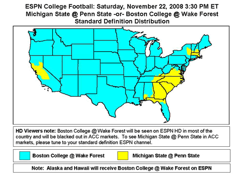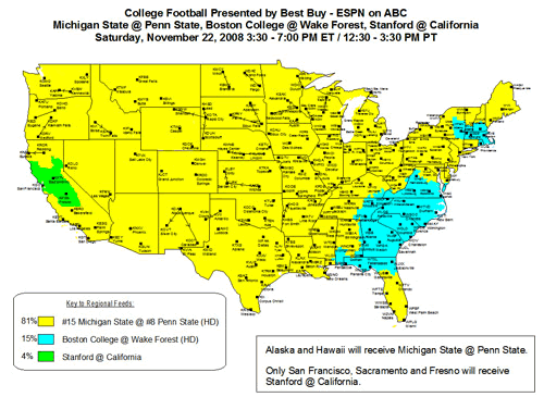 Below are the coverage maps for this week's regional action on ABC and ESPN2