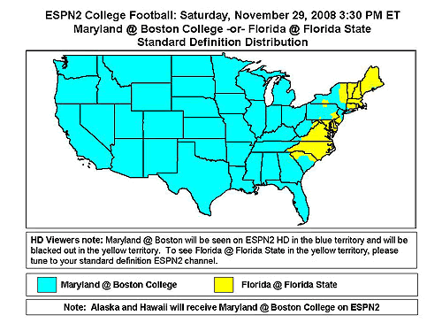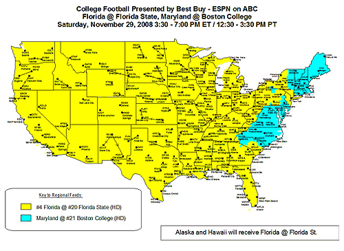 Below are the coverage maps for this week's regional action on ABC and ESPN2