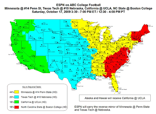 Below are the coverage maps for this week's regional action on ABC and ESPN