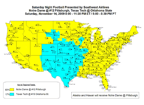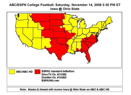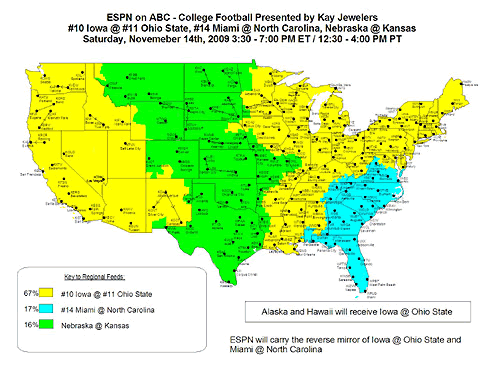 Below are the coverage maps for this week's regional action on ABC and ESPN2