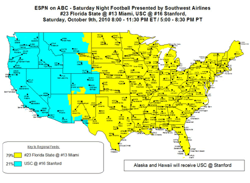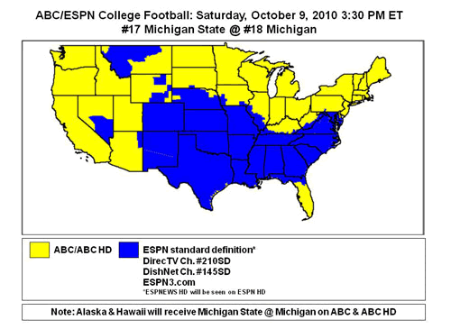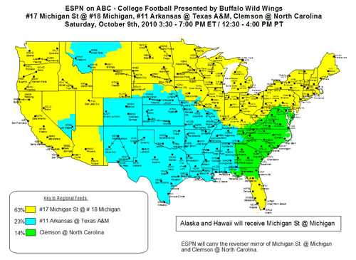 Below are the coverage maps for this week's regional action on ABC and ESPN