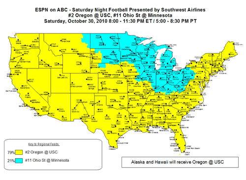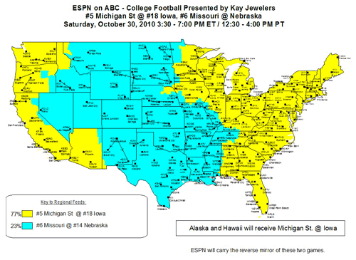 Below are the coverage maps for this week's regional action on ABC and ESPN