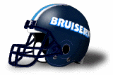 The Bruisers may have also at some point used a helmet design similar to this one, but without any stripes (photographs would be appreciated). In one (or two?) of the earliest AFL exhibition games, the Bruisers used white helmets with a black or blue "B" on the sides; I would appreciate some color photographs from this game (or games).