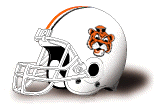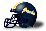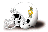 I have received very little information about historical helmet designs for this team. The photograph below shows a design used by Cal Poly in 1982; the helmets are probably gold in color and have a strange logo that appears to consist of the front half of a horse's body which transitions into a "lightning bolt" towards the back of the helmet. I would greatly appreciate a clear photograph of this interesting design. This design was apparently still in use as late as 1986.