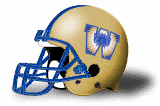 The Blue Bombers apparently used at least one or two other helmet designs during the very early 1960s: during at least the 1961 season, the helmets were royal blue with white "lightning bolts" (and possibly white uniform numerals, also); this design may also have been used in 1960, or else the team may have been using just the white numerals that year without the bolts. I would appreciate some clear photographs from the 1960 and 1961 seasons.