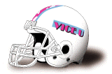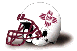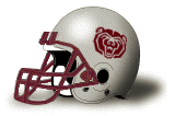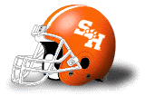 I have not received any information about pre-1975 SHSU helmets. In 1979 the team used white helmets with a "bearkat head" logo (photo below); I would appreciate a clear color photograph of this design. It has been reported to me that not enough of these decals were ordered, and that towards the end of the season about half the team were using "blank" helmets.