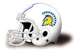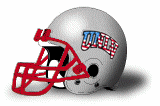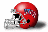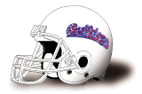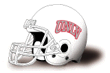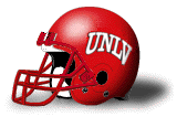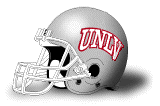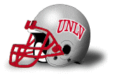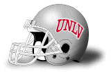 The first UNLV football team played in 1968, at which time the school was named Nevada Southern University. The helmet design shown in the photograph below was apparently the first one used by the team. One would naturally assume that the colors within the football-shaped helmet logo were similar to those used on the flag which is popularly referred to as the "Confederate Battle Flag" (i.e., blue "X" with white stars on a red field), but I have never received any color photographs to confirm this. The helmet shell appears to be silver. A color photograph of this design would be appreciated greatly.