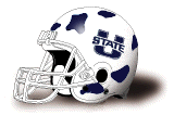 *2 I have found only a single clear photograph of Wyoming's 1990 helmet design, but it shows quite clearly the number "1890" atop the horse decal on the LEFT side of one player's helmet, and the number "1990" on the logo on the RIGHT side of a different player's helmet. These special decals were apparently used in recognition of the 100th anniversary of Wyoming's statehood, and I do not know if they were used for every game during 1990.
