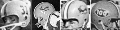 *1 In 1969 the circular logo was worn on the left sides of the helmets; on the right sides was worn a version of the "100" football centennial logo. I do not yet know what colors were used in ISU's version of this logo, but the football-shape was of some dark color with a white outline and with white numerals.