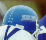 During the 2000 season CCSU used blue helmets with decals containing the words "Blue Devils" and a pitchfork; below is a rather poor picture of this helmet. I would appreciate a copy of the decal used on this design.