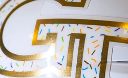 *2 First worn September 10, 2011 (at Central Florida). While I have not attempted to represent it here this design features what was called a "stained glass" pattern within the white helmet stripe (photo below).