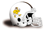Truman State University was known as Northeast Missouri State University prior to July 1, 1996; hence the "NE" logos on some of the earlier designs shown above. The earliest "NE" logo was used at least as early as 1980. In 1978 the team used white helmet shells with a purple-yellow-purple sequence of stripes; I do not know if any decals were worn on the sides of this design.