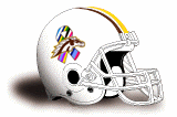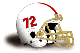 Toledo's helmet history is unclear for the earliest years covered by this web site (early 1960s). The team apparently used white helmets from at least 1960 through 1966. Judging from a very small number of photographs it would appear that these white helmets had a single dark stripe in 1960 and 1961 (probably blue, if the school colors have not changed); a single photograph from 1962 shows numbers on the sides of the helmet (otherwise like 1961); and in 1963 what was apparently a "rocket" logo different from the 1964-1966 one was used (photo below). Numerals of unknown color are also visible at the back of the helmets in all available clear photos from 1963 through 1966.