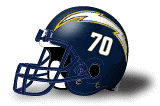 *3 The Chargers used white helmets a number of times in the 1990s and early 2000s before switching permanently to white helmets again in 2007. White helmets were used for several games during the 1994 season (which was the NFL's 75th anniversary); also on October 29, 2000 for a home game against the Oakland Raiders (as part of the team's recognition of its 40th anniversary); on November 3, 2002 for a home game against the New York Jets; and on September 21, 2003, during a home game against the Baltimore Ravens. The numeral style varied to at least some degree on these occasions. While I have several photographs from the 2002 season, I have found only a single one from 1994 (the one shown at Mike Stanhope's web site); a comparison of these implies that the numerals used in 2002 were both larger and bolder than those used in 1994, and that neither was necessarily a close match for the numerals used during the 1960s and 1970s. I would appreciate additional photographs from the 1994 season and from the October 29, 2000 game, so that I can more accurately identify the differences in these helmets.