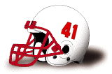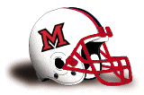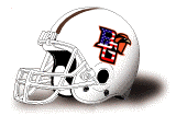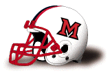 Toledo's helmet history is unclear for the earliest years covered by this web site (early 1960s). The team apparently used white helmets from at least 1960 through 1966. Judging from a very small number of photographs it would appear that these white helmets had a single dark stripe in 1960 and 1961 (probably blue, if the school colors have not changed); a single photograph from 1962 shows numbers on the sides of the helmet (otherwise like 1961); and in 1963 what was apparently a "rocket" logo different from the 1964-1966 one was used (photo below). Numerals of unknown color are also visible at the back of the helmets in all available clear photos from 1963 through 1966.