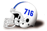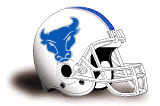 The 1973 helmet design had a blue shell, a yellow/blue/yellow set of stripes, and a rather small yellow oval or football-shaped logo on both sides (photographs below found in opposing teams' yearbooks - Toledo did not publish a 1974 yearbook). No photographs have been found that are sufficiently clear to reveal what was inside the football-shape, but it is stated in the September 5, 1973 edition of the Toledo Blade that the team "will wear a commemorative decal on their helmets...in the shape of a football that will say 'A Tribute to Tony'" - this in reference to a freshman member of the team, Tony January, who died on August 30 after collapsing during a practice session.