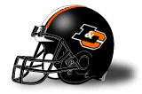 The second helmet design shown above was apparently in use during at least the period 1965 through 1983 but I am unsure about the facemask color during the later years; both black and orange facemasks may have eventually been used. The college has published its old yearbooks on the internet and most of these years are covered, but few of them have color photographs.