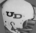 From 1986 through 1994 Dayton used a design that was very similar to the "1975 - 1985" helmet shown above, but with the addition of a royal blue outline around the white letters.